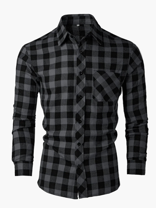 Herren Karohemd Langarm Slim Fit Freizeit Business Modern