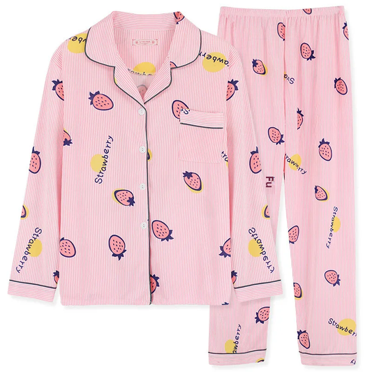 Damen Schlafanzug mit Herzmuster – Langarm-Set mit Knopfleiste & Elastikhose