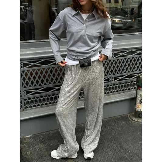 Lydia - Silberne Paillettenhose Für Festliche Anlässe