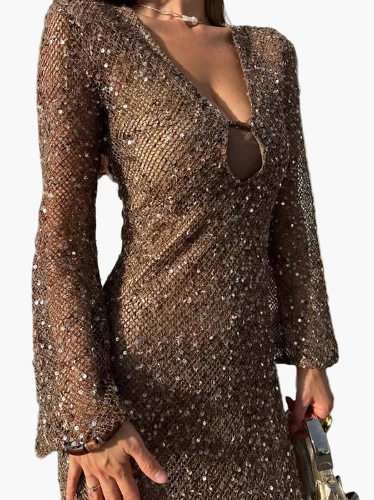 Damen Paillettenkleid mit tiefem Ausschnitt und eleganter Silhouette – Perfekt für festliche Anlässe