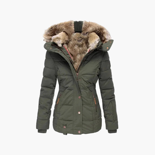 Damen Winterjacke mit Kapuze und Kunstfellbesatz – Elegante, taillierte Outdoorjacke für kalte Tage