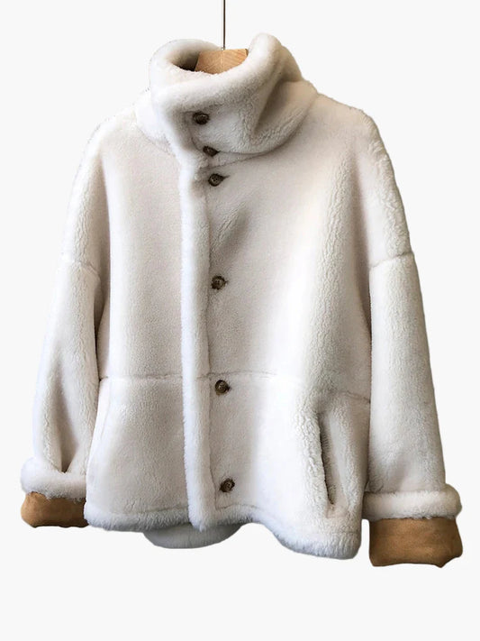 Damen Teddyfell Kurzjacke mit Knöpfen – Modischer Wintermantel für Alltag und Freizeit