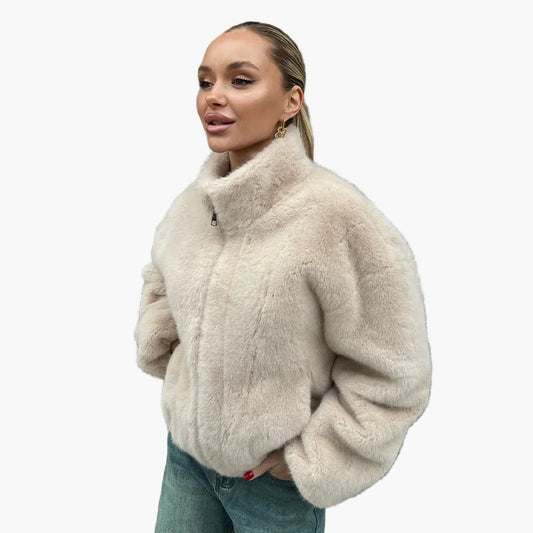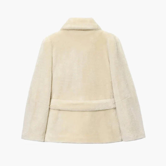 Damen Kurze Wickeljacke mit Plüschkragen – Modische Outdoor-Jacke für Herbst und Winter