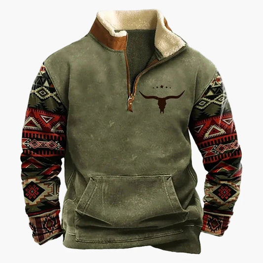 Herren Vintage Quarter-Zip Pullover mit Ethno-Print und Sherpa-Futter – Freizeit & Outdoor