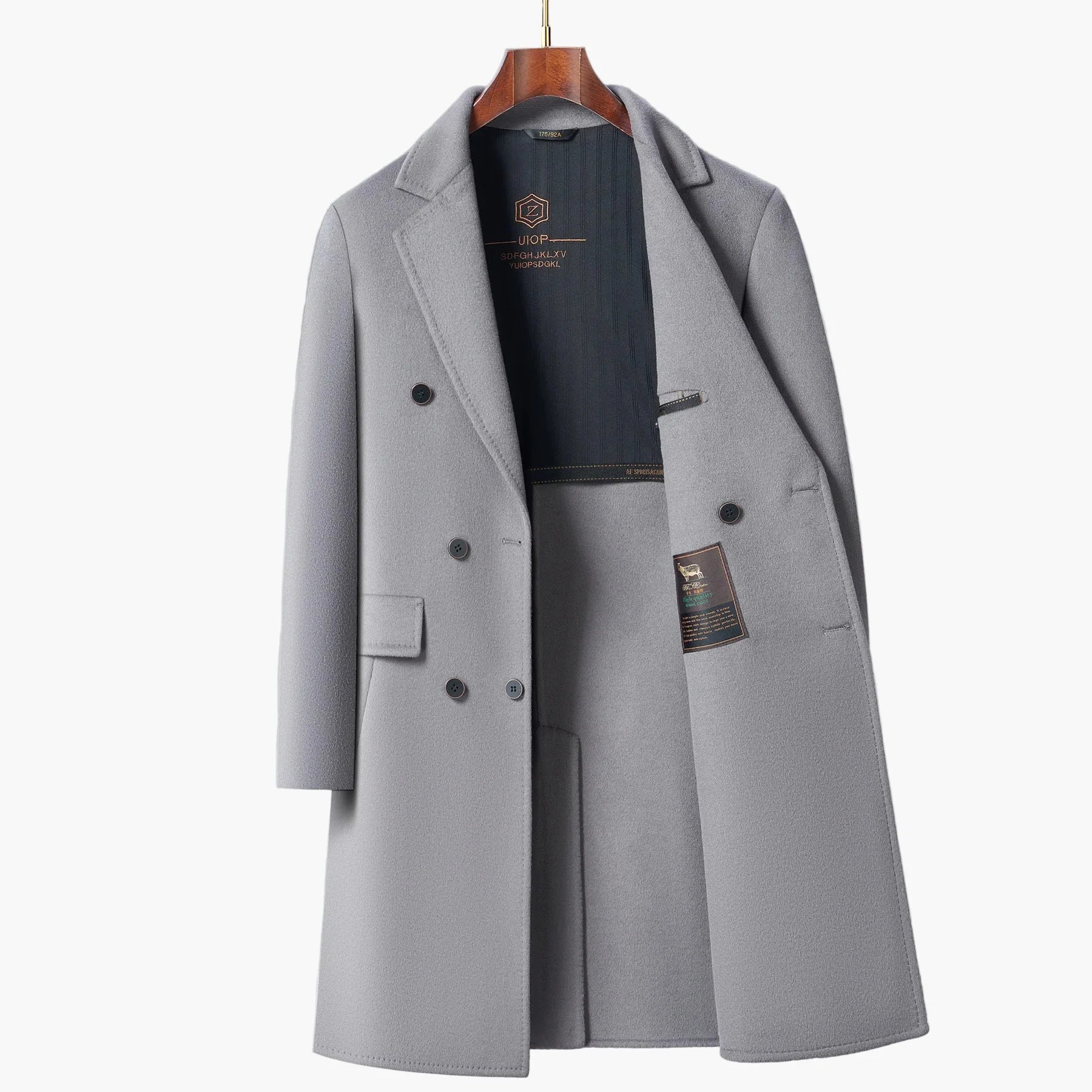 Entdecken Sie zeitlose Eleganz mit diesem klassischen Herren Business-Mantel im Doppelreiher-Stil. Das minimalistische Design und die klare Linienführung machen diesen Mantel zu einem vielseitigen Begleiter für Büro, Business-Meetings oder stilvolle Freizeitaktivitäten. Zwei Reihen dezenter Knöpfe, ein trendiger Reverskragen und durchdachte Taschen verleihen dem Mantel ein modernes, professionelles Erscheinungsbild.